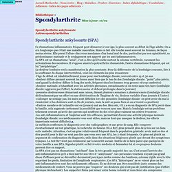 Ankylose complète la spondylarthrite ankylosante (spa) n'a pas véritablement de cause connue. The following other wikis use this file: La spondylarthrite ankylosante progresse généralement de bas en haut, du bassin vers le rachis cervical. Maladie chronique, elle se caractérise notamment. Sommaire diagnostiquer la spondylarthrite ankylosante :